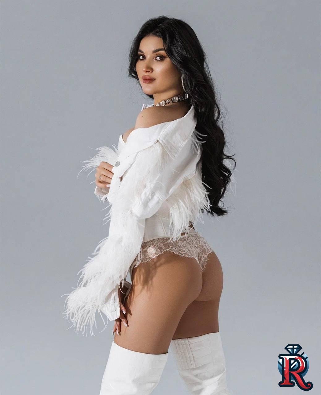 She is a luxurious brunette with voluminous waves and delicate, doll-like features. Her image is built on contrast — an innocent, soft “baby face” paired with a confidently sensual style. A white outfit with subtle ruffles enhances her sun-kissed glow and highlights a refined tattoo, creating a look that feels both нежный and daring at the same time. She doesn’t just stand out — she leaves a lasting visual impression.